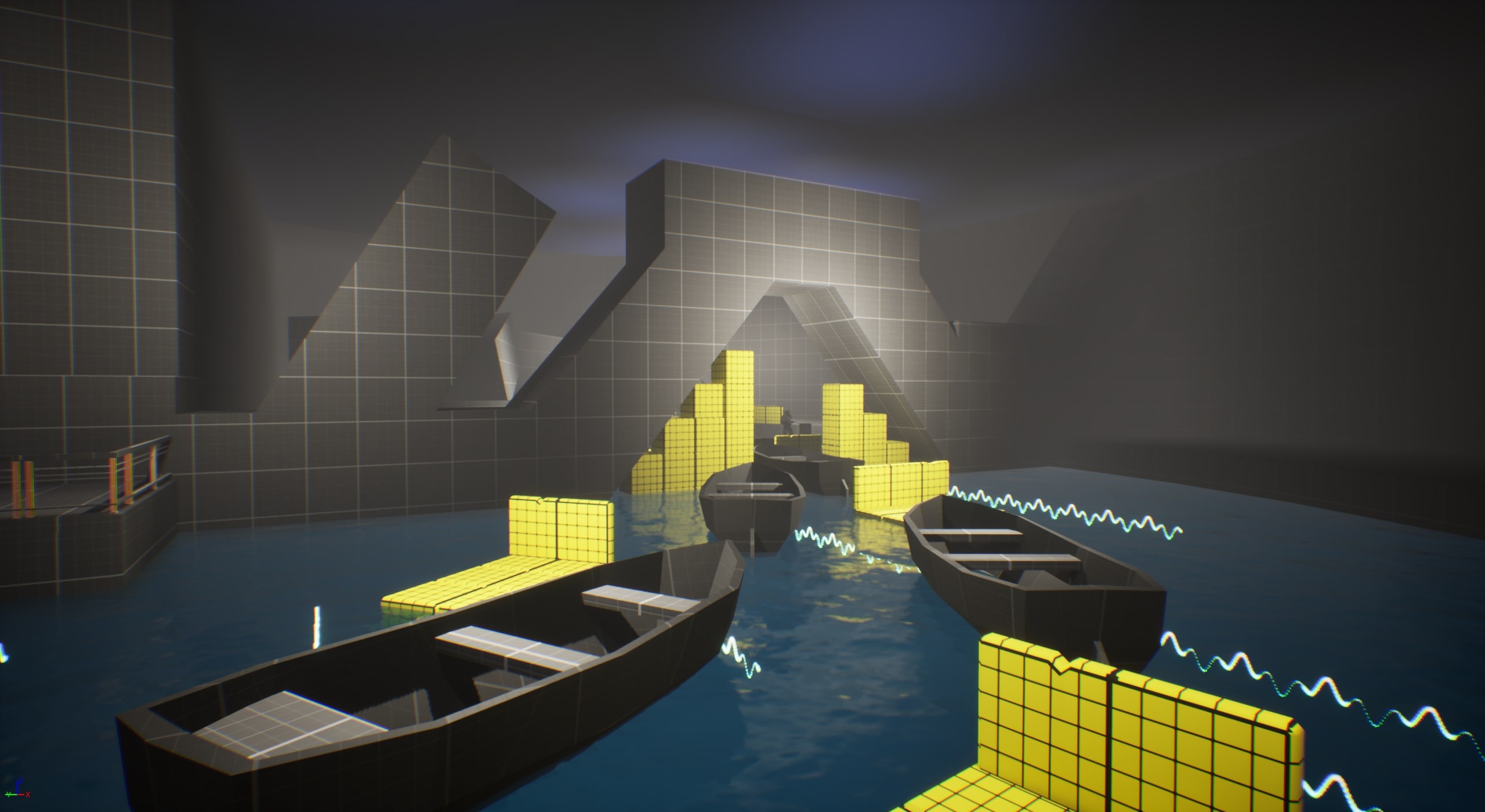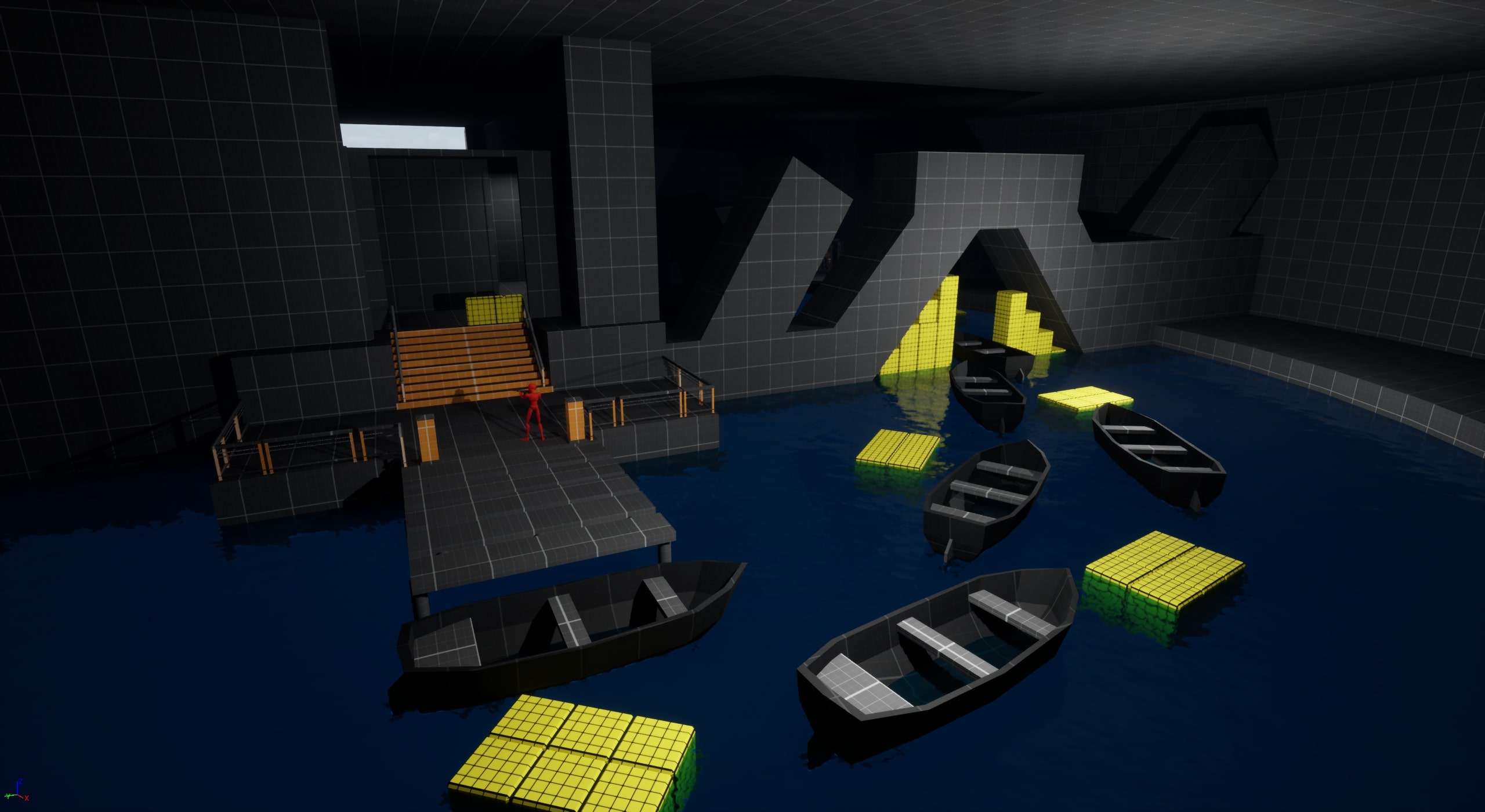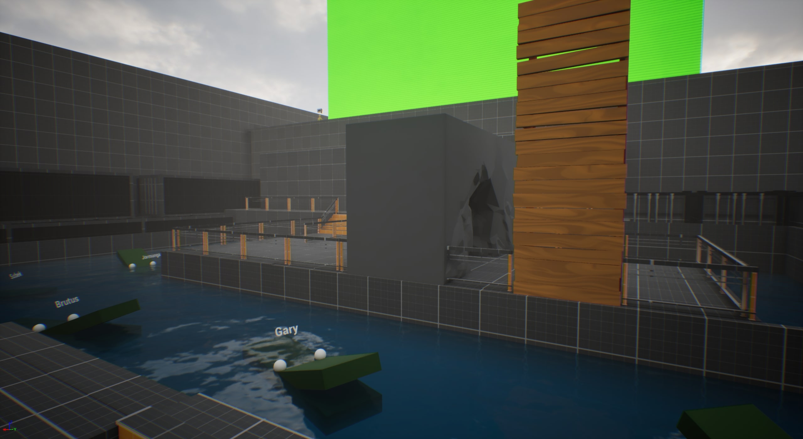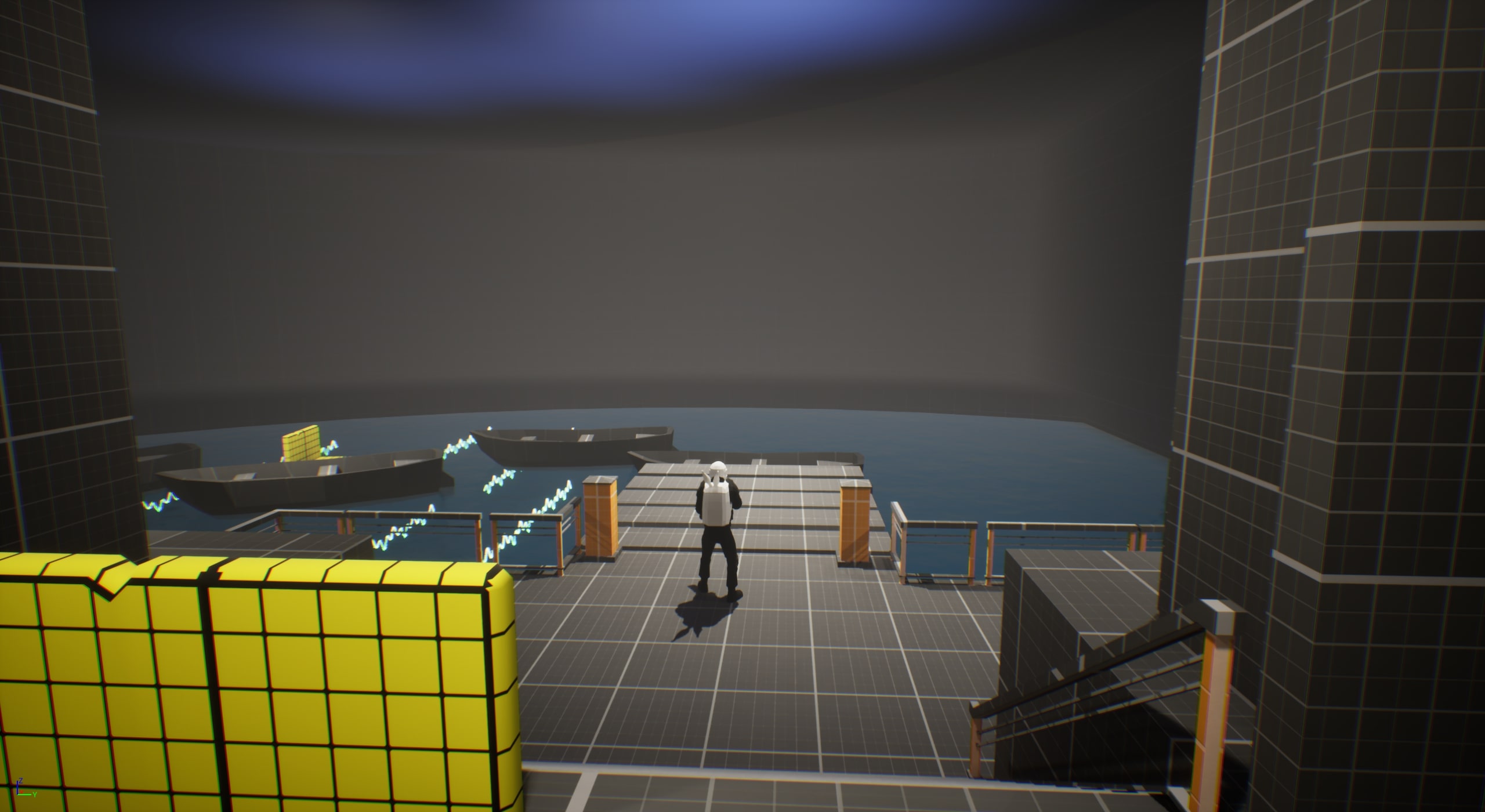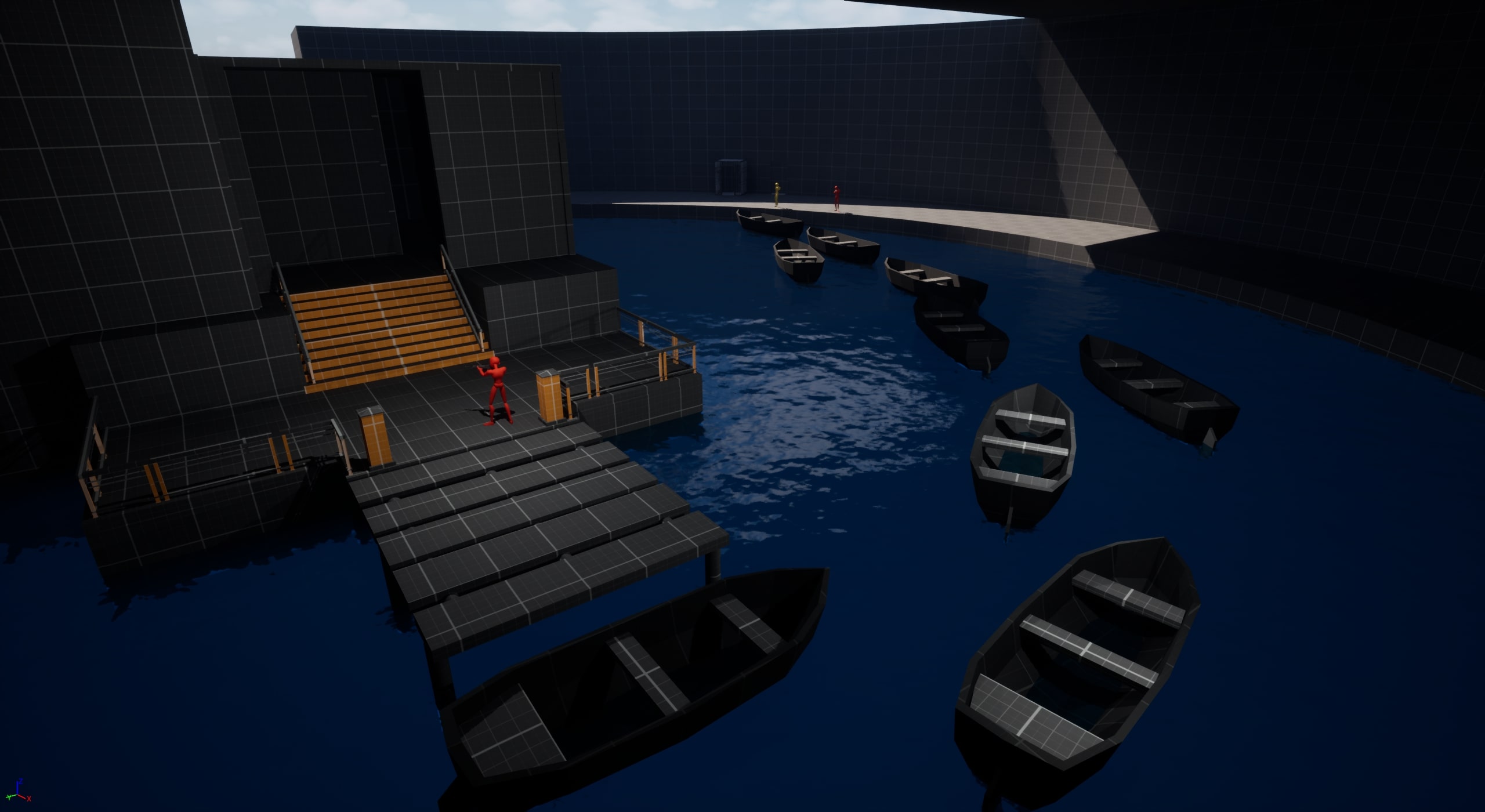 - Placed barriers and adjusted collision settings around the lake to block entry and keep players within the intended gameplay area.