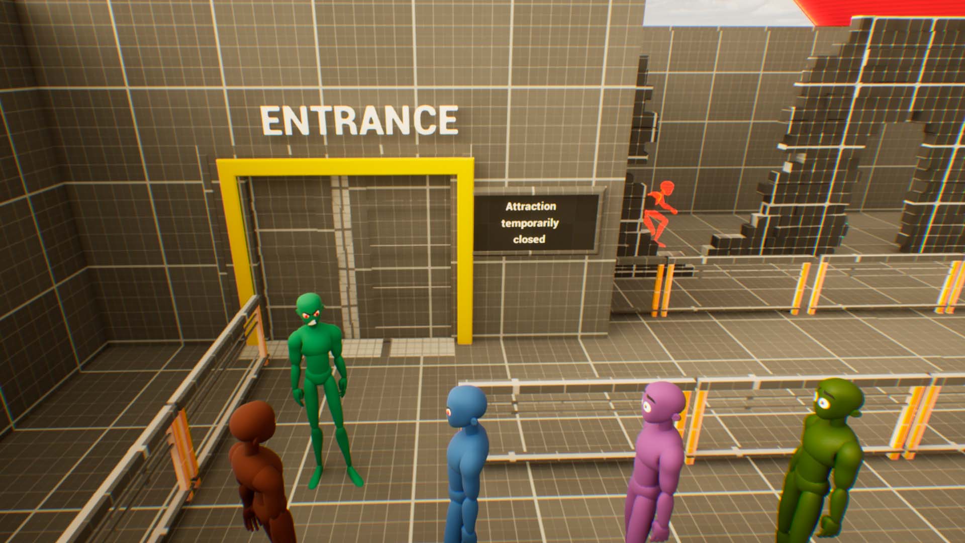 The level became more structured and player-friendly. Attraction guidance texts reduced confusion, the Fast Pass system improved pacing and flow, and blocking the lake ensured players stayed focused on core objectives without breaking level boundaries.