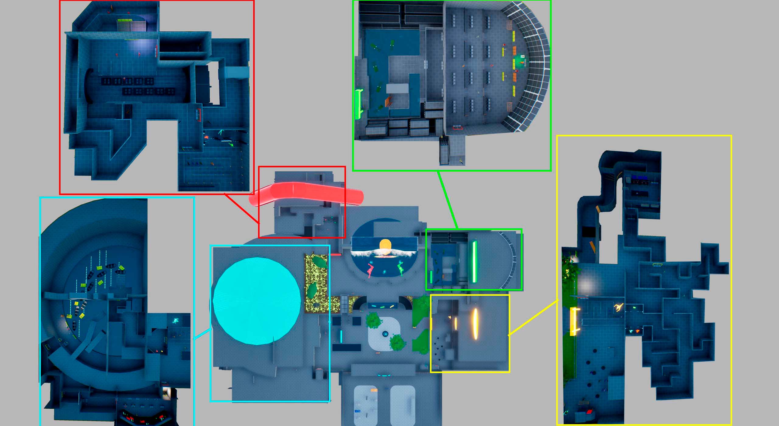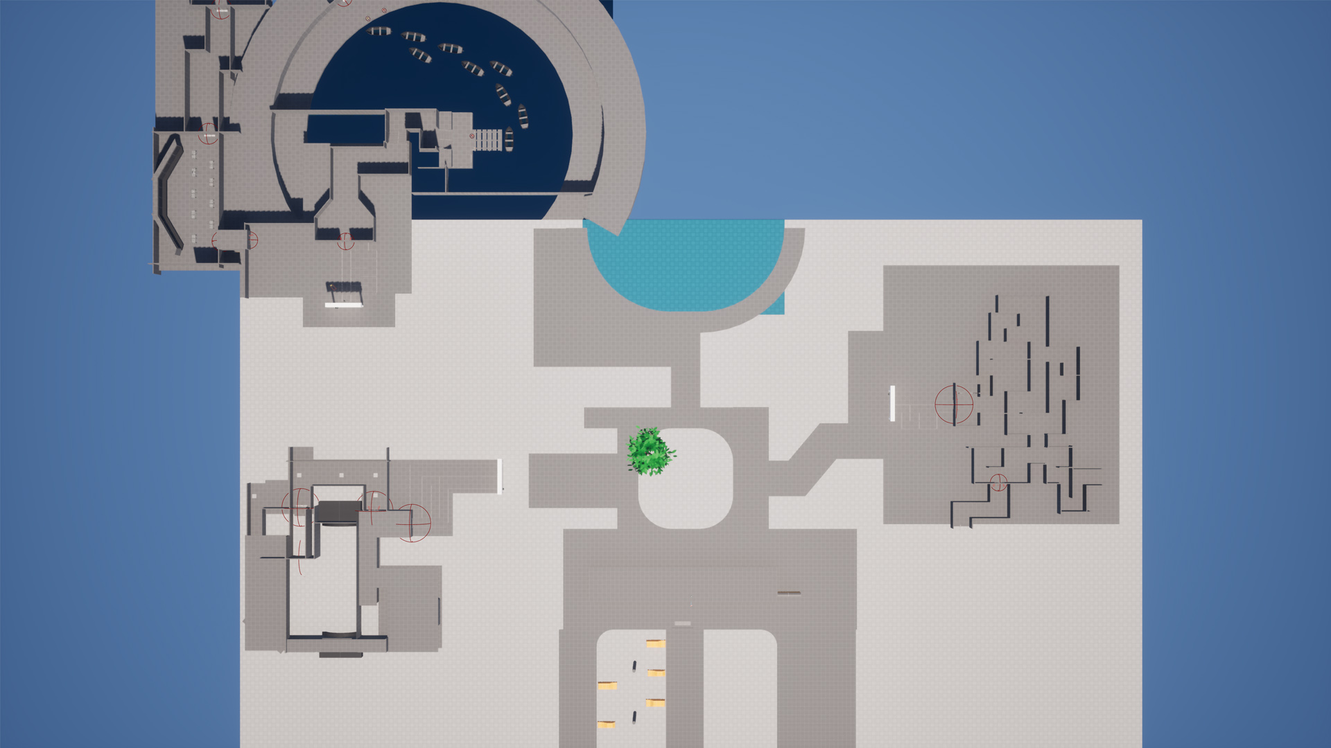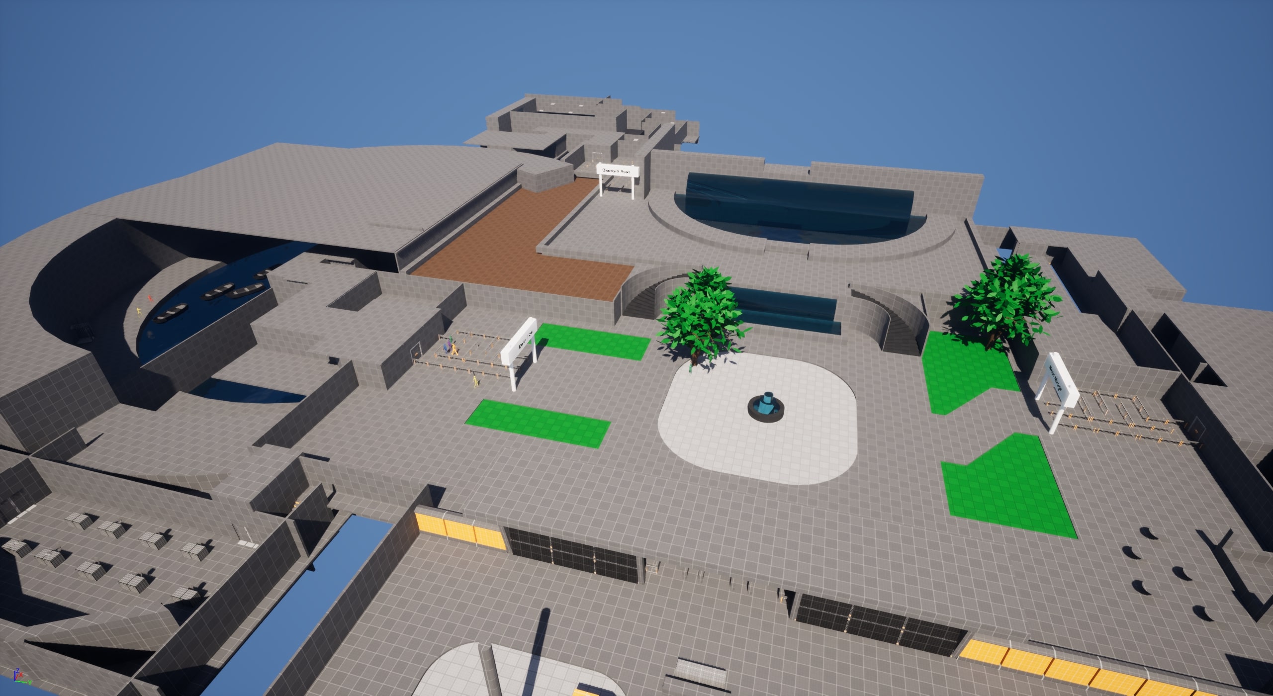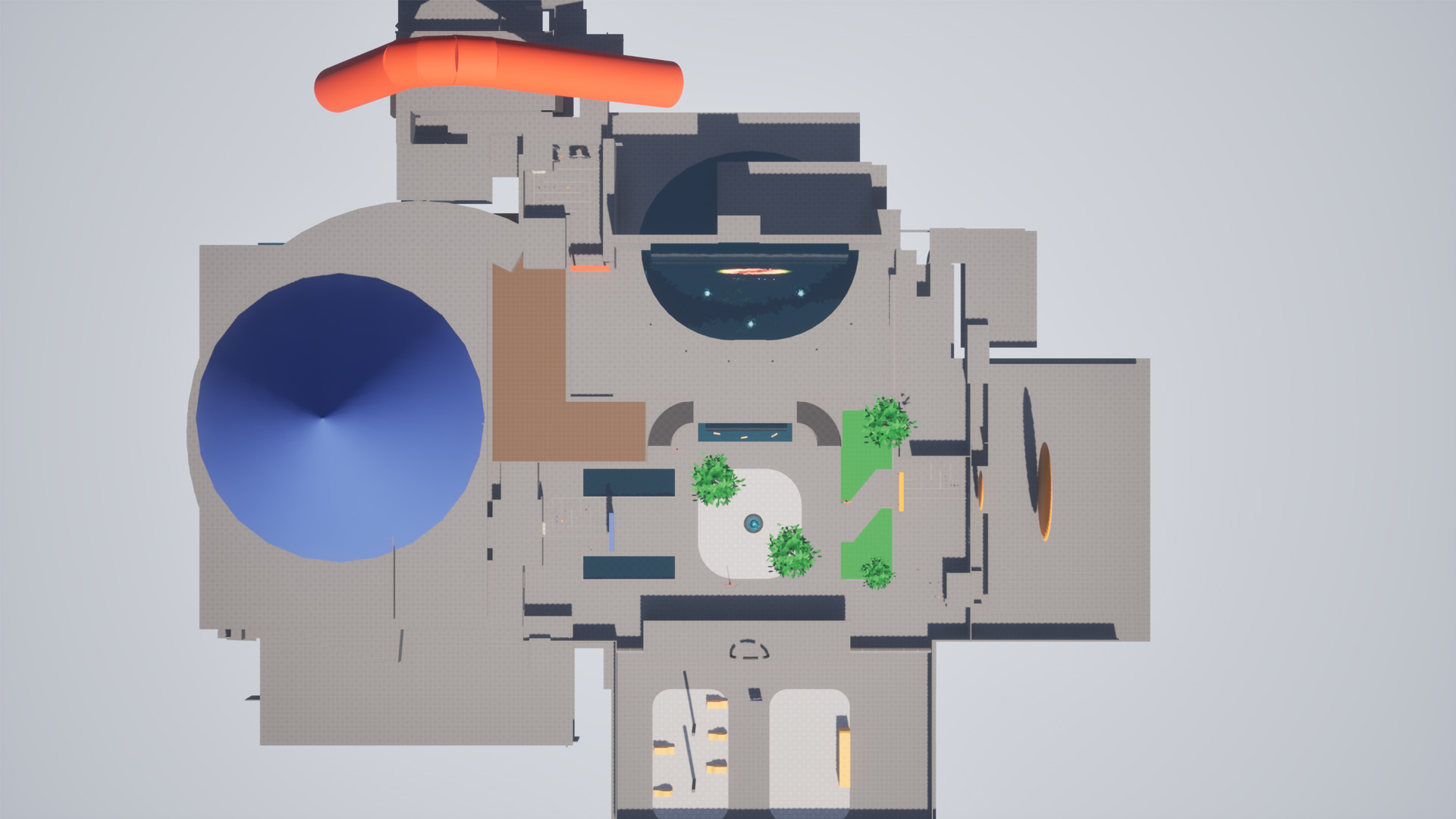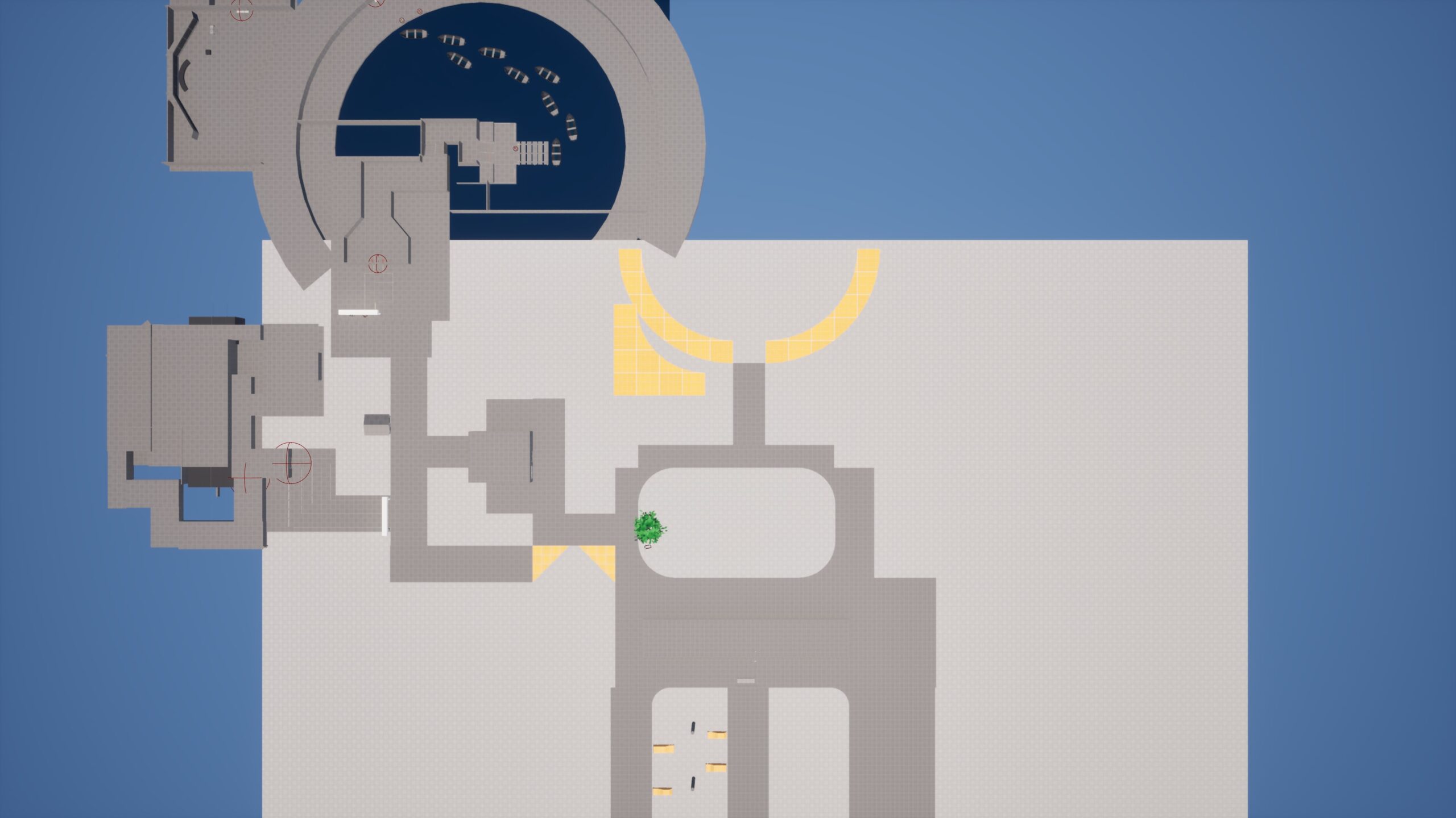 - Transitioned from 2D map to UE5 and blocked out the level using simple geometry and color coding to reduce clutter.