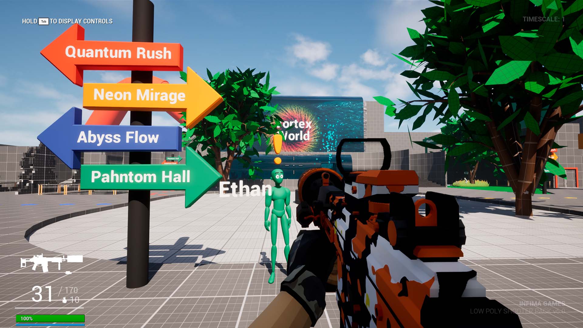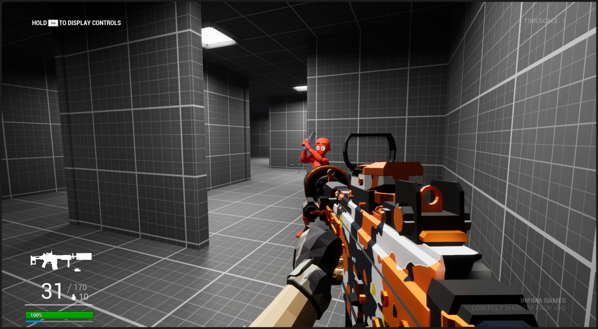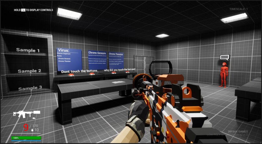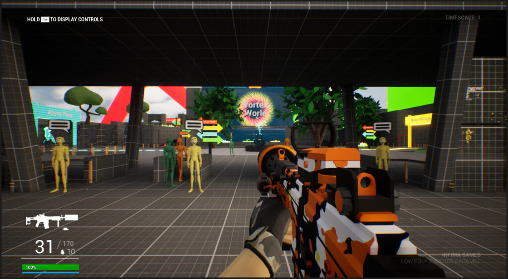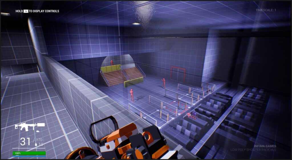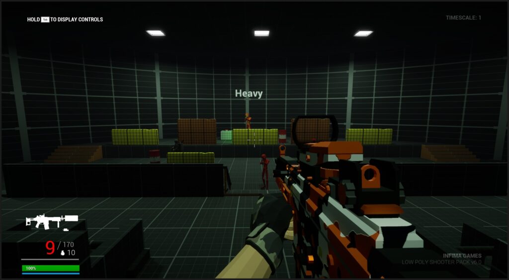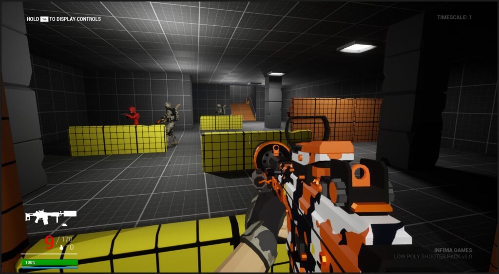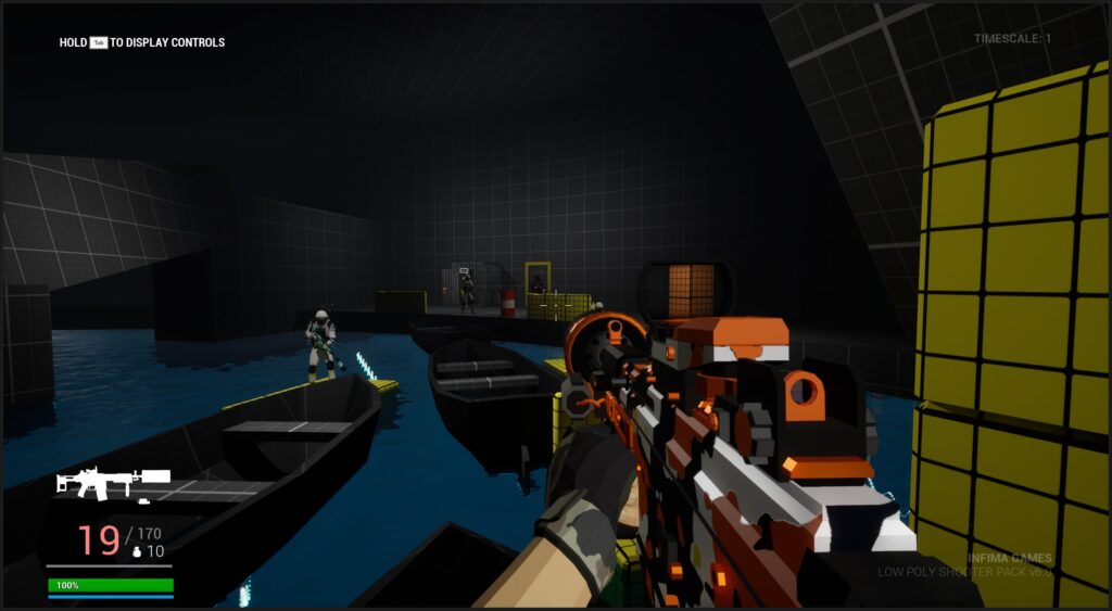 - Tools: Low Poly Shooter Pack, Level Design Kit, Blocking Starter Pack, Blueprints