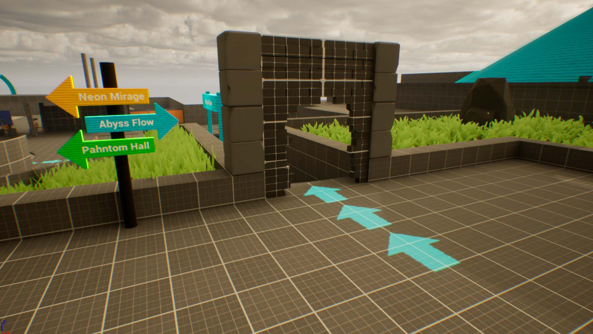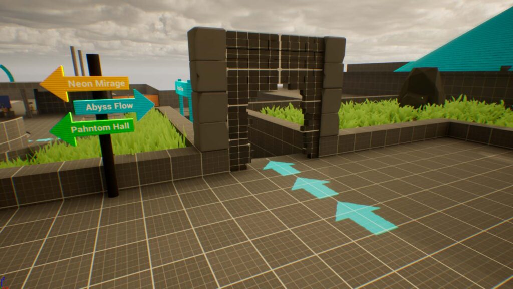 Navigation through Design:Lighting, signage, and angled architecture direct player attention naturally without UI.