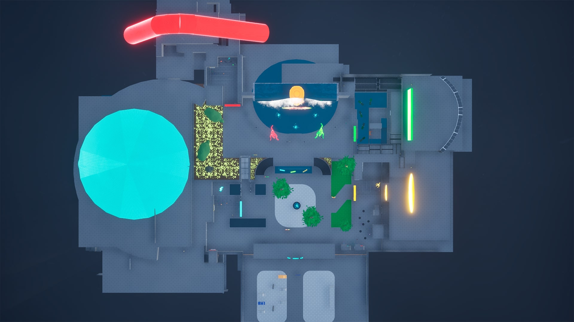Used consistent lighting cues, geometry scaling, and spatial spacing to ensure jumps, cover, and interactables feel readable—even in the park’s visual chaos.