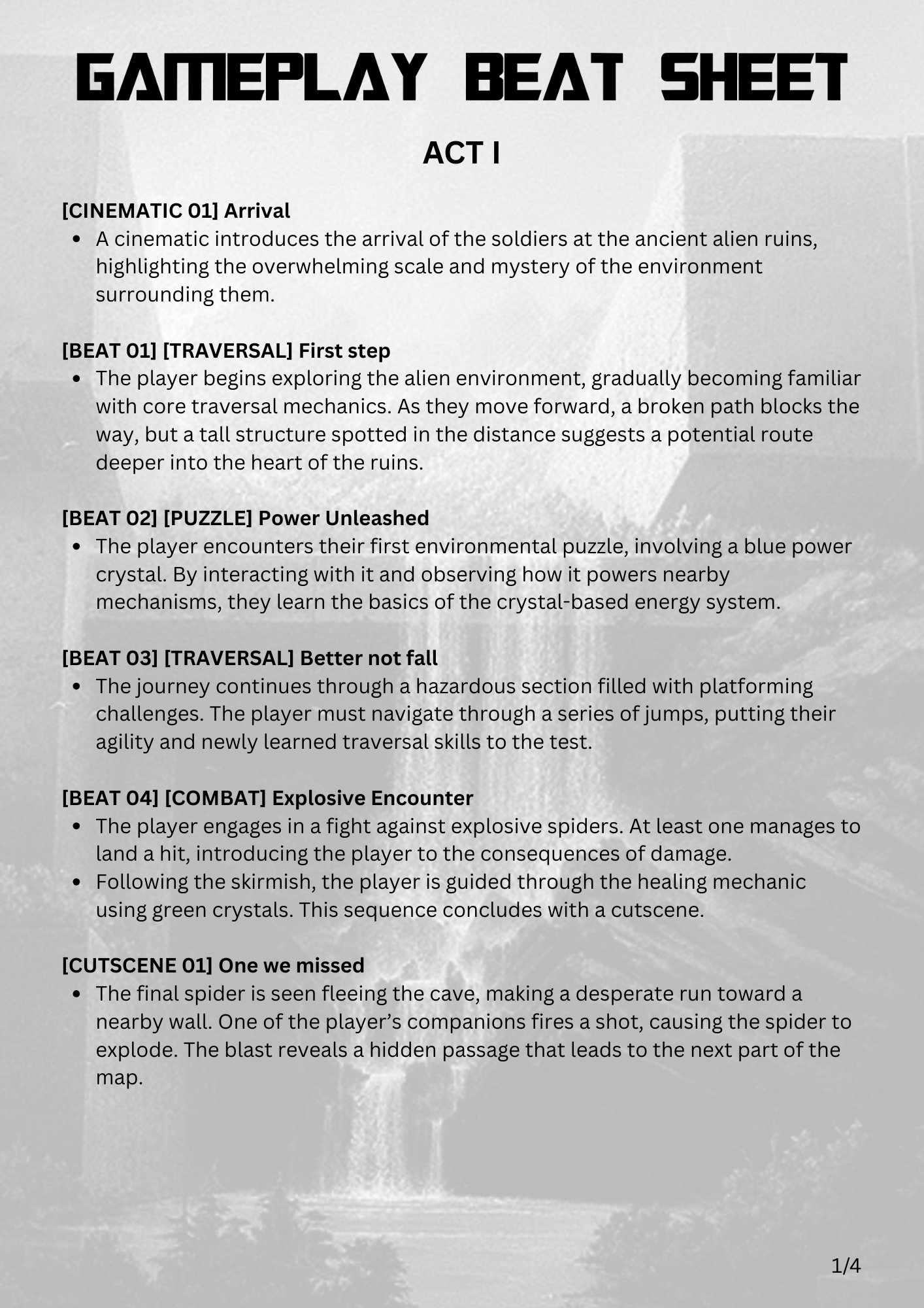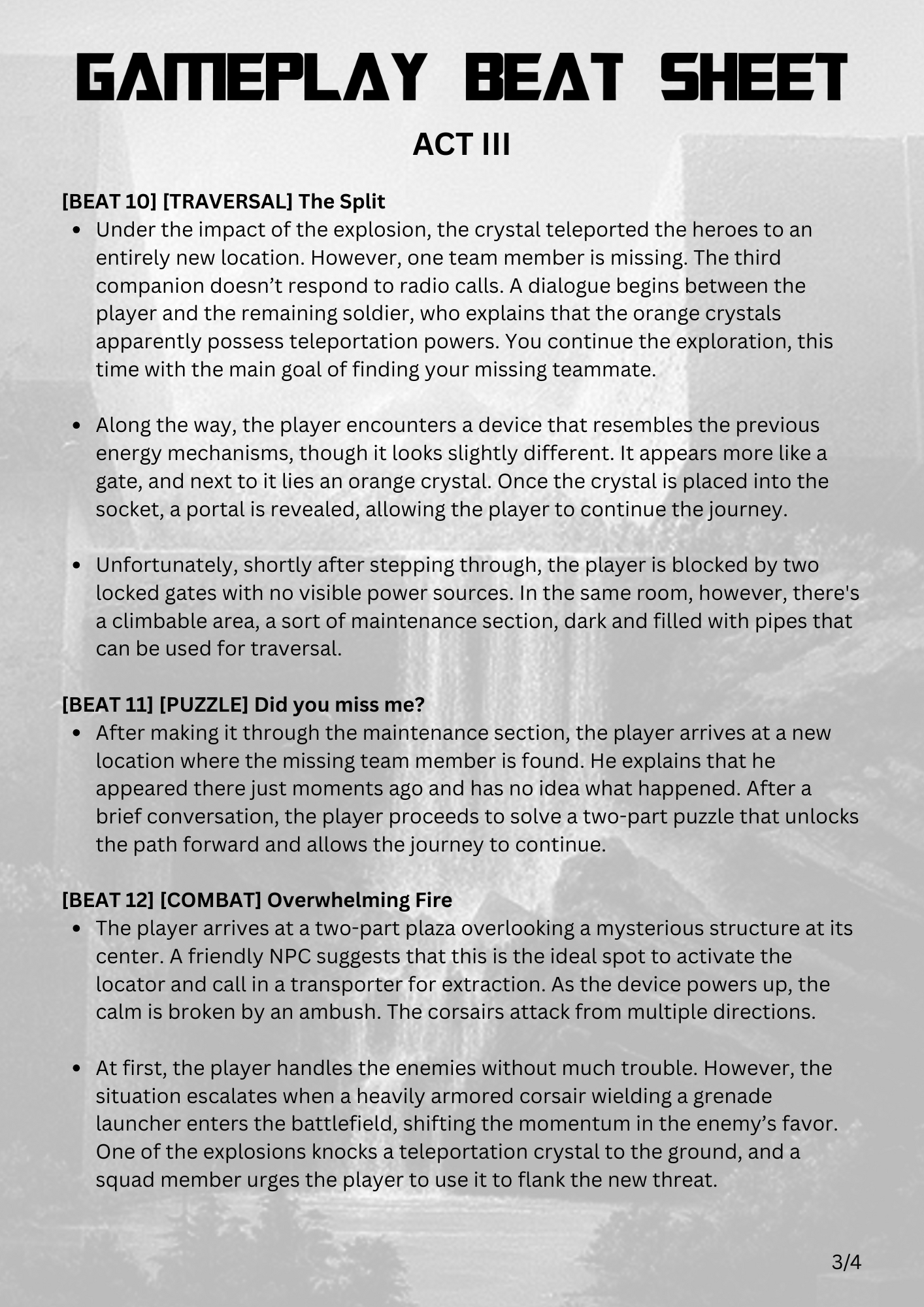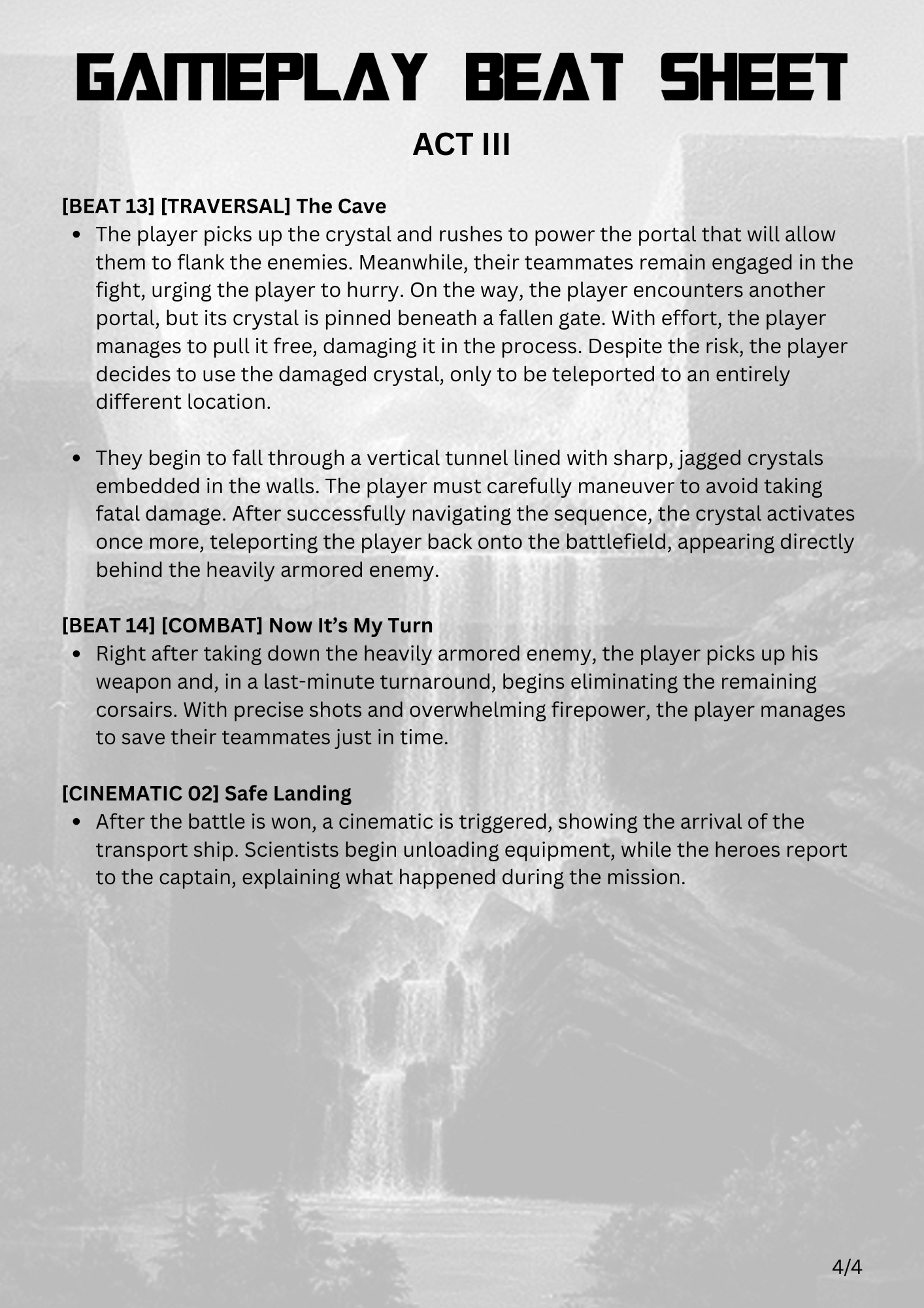 This LDD was developed from concept to final revision, covering the full design process. It includes detailed documentation of narrative, mechanics, pacing, and spatial layout, serving both as a production guide and as a showcase of my design approach.