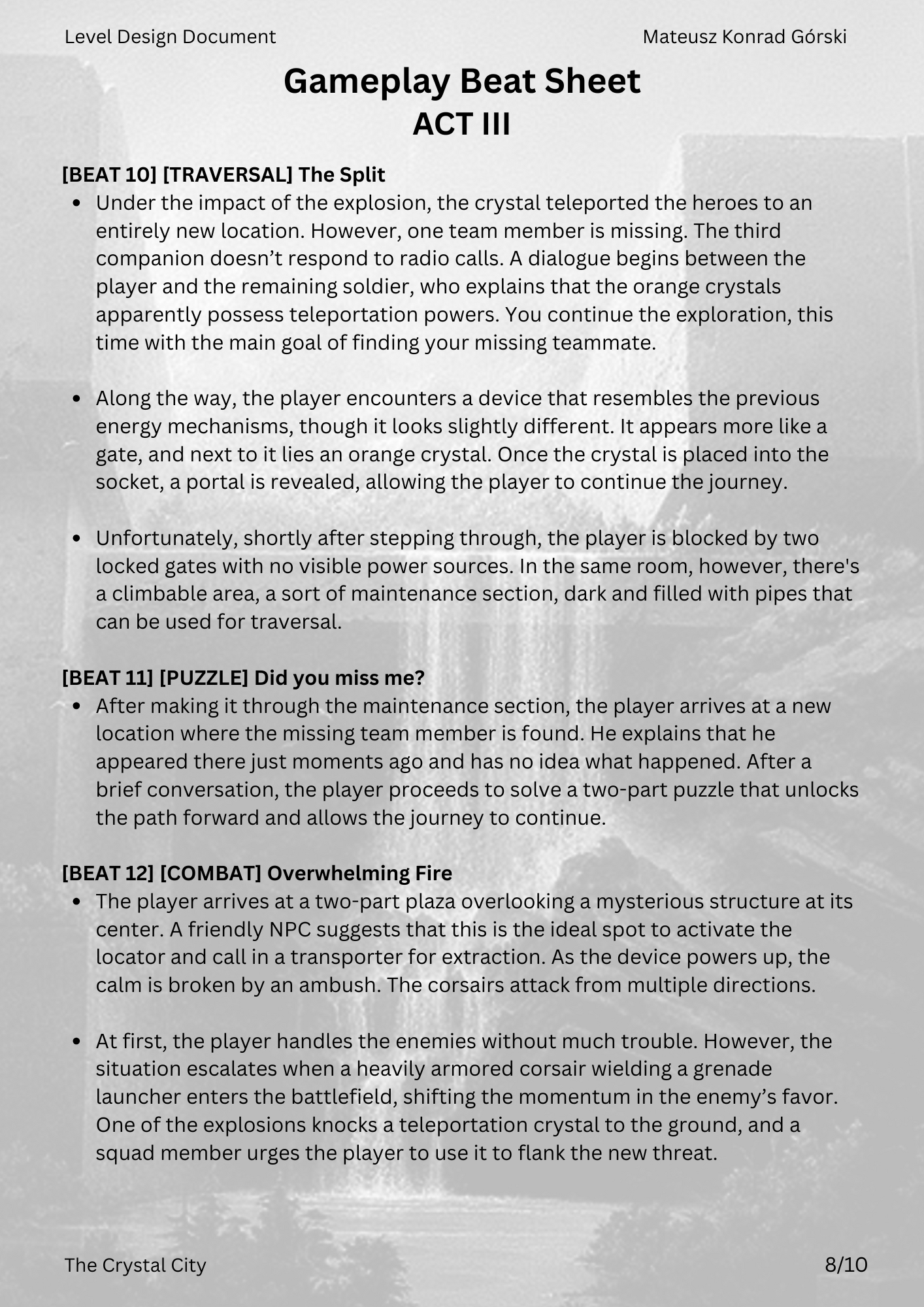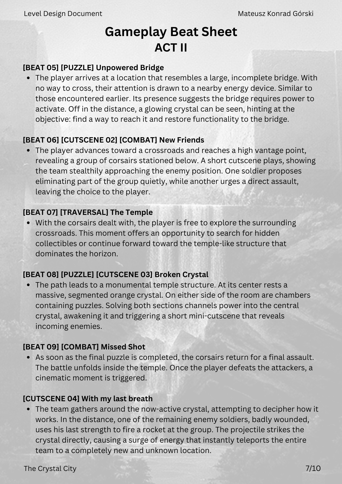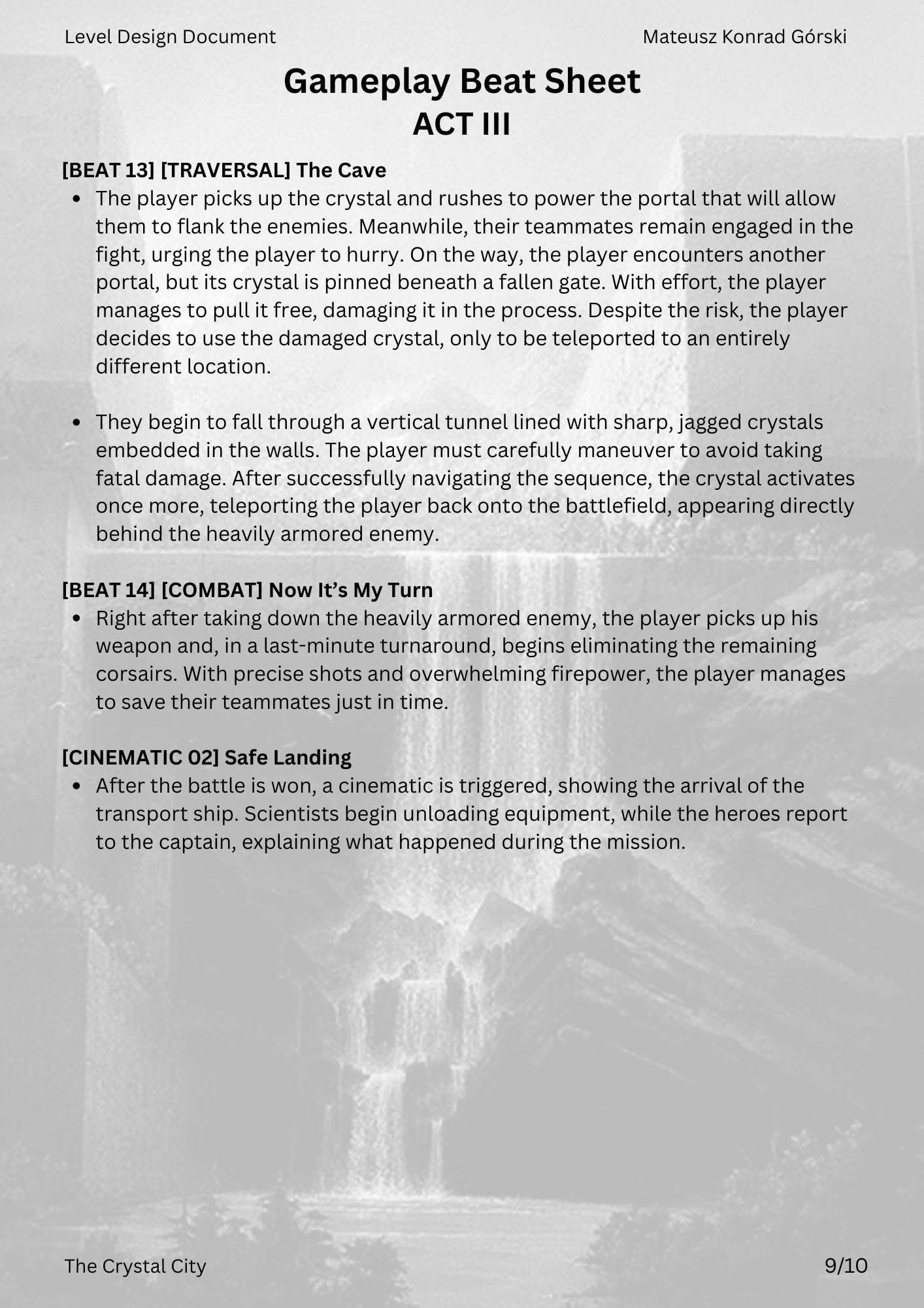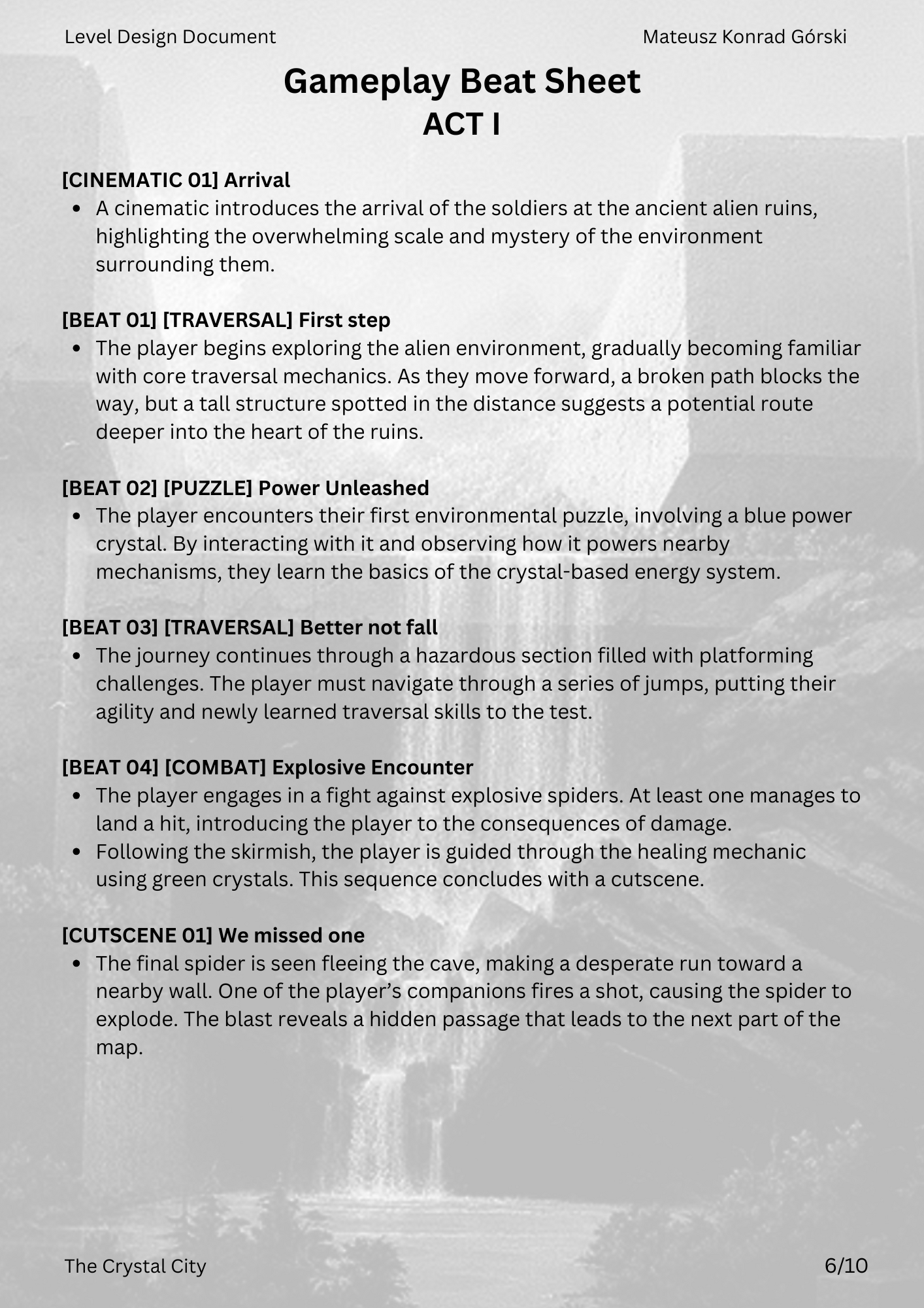 This LDD was developed from concept to final revision, covering the full design process. It includes detailed documentation of narrative, mechanics, pacing, and spatial layout, serving both as a production guide and as a showcase of my design approach.