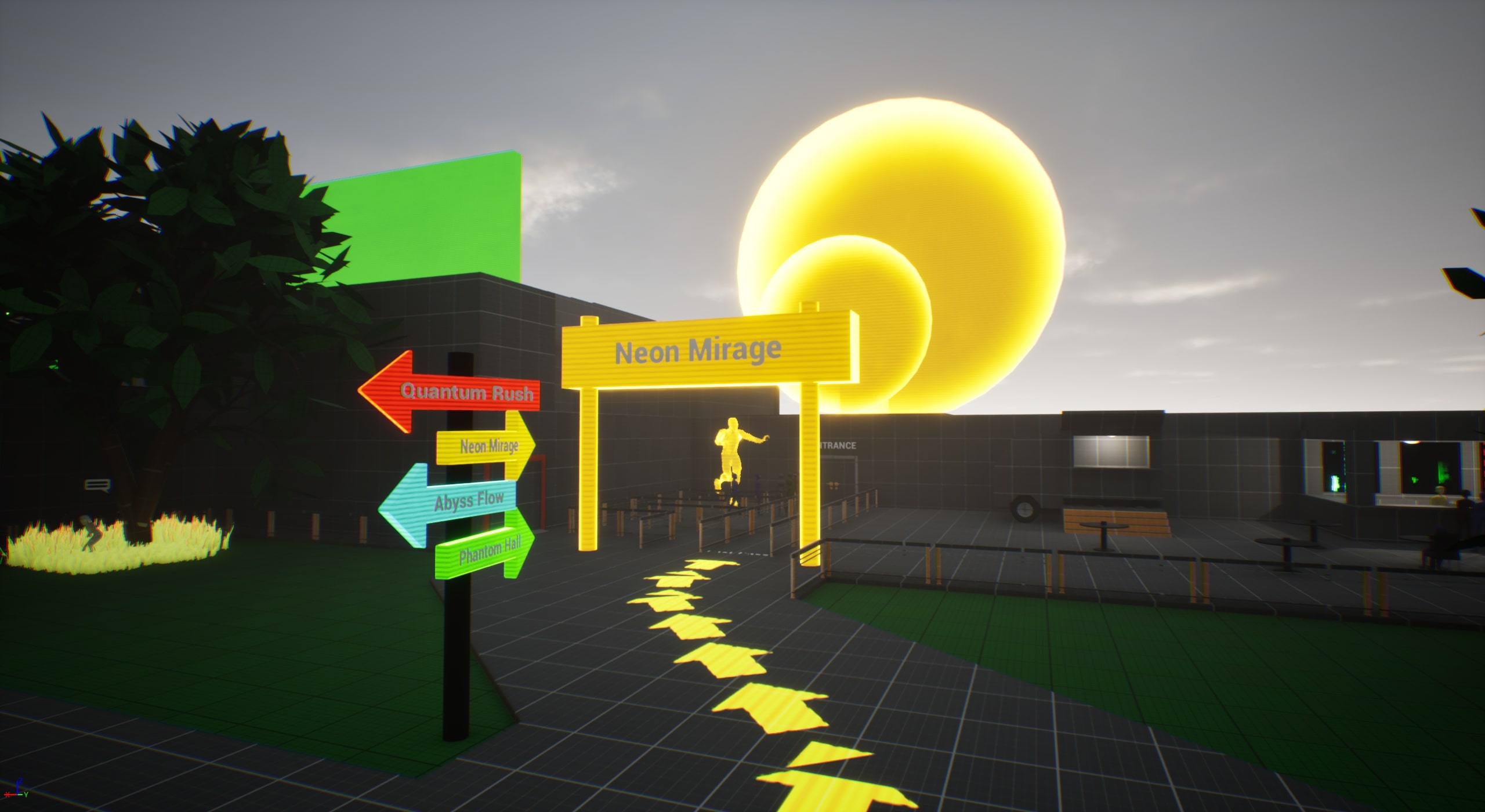 Date signs guide players to attractions while hinting at a fragmented timeline. - Improved visuals: Added laced physical signs throughout the park to guide players toward each attraction, supporting navigation and reinforcing environmental storytelling.